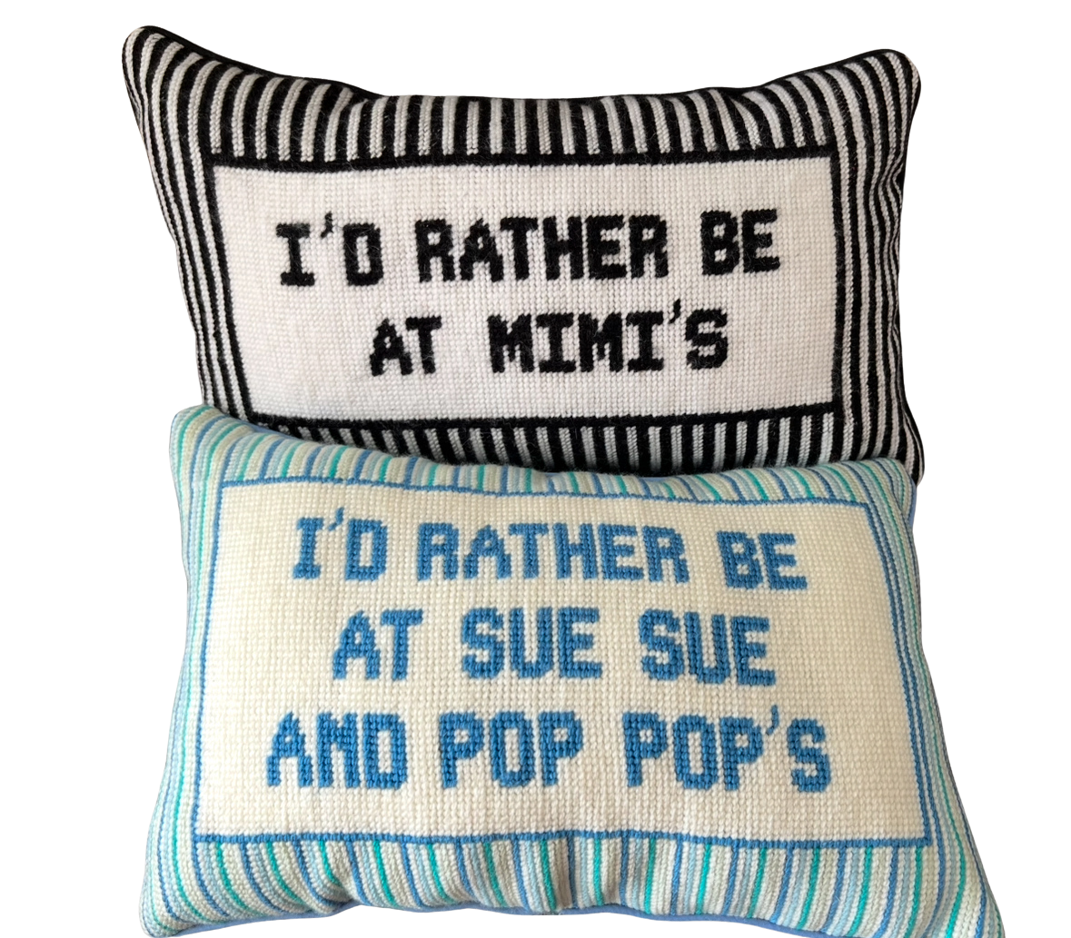 Handmade Needlepoint Pillow "I'd rather be at ...."